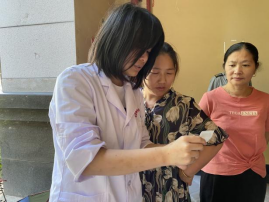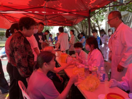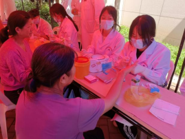 活動現(xiàn)場,醫(yī)學(xué)檢驗技術(shù)專業(yè)的師生們通過開展血型鑒定,發(fā)放無償獻(xiàn)血宣傳材料,普及了獻(xiàn)血的相關(guān)知識和無償獻(xiàn)血的重要意義,學(xué)生們在活動中強(qiáng)化了血液學(xué)知識的應(yīng)用,以行動提升對無償獻(xiàn)血的認(rèn)知。師生還為居民進(jìn)行血糖測定和乙肝表面抗原檢測,結(jié)合檢測結(jié)果,普及糖尿病和乙肝預(yù)防知識,養(yǎng)成健康生活習(xí)慣。