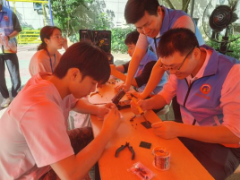 智能醫(yī)療裝備技術(shù)和醫(yī)療設(shè)備應(yīng)用技術(shù)專業(yè)的師生現(xiàn)場對居民送來的故障小電器進(jìn)行檢測和維修,普及了小型家用電器維護(hù)保養(yǎng)與維修的常識和意義,同時提高學(xué)生利用專業(yè)知識踐行為民服務(wù)的認(rèn)同感,踐行醫(yī)學(xué)生奉獻(xiàn)精神和職教精神。