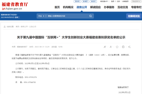 第九屆福建省“互聯(lián)網(wǎng)+”大學(xué)生創(chuàng)新創(chuàng)業(yè)大賽由福建省教育廳、福建省委統(tǒng)戰(zhàn)部、福建省委網(wǎng)信辦、福建省發(fā)改委、福建省工信廳、福建省人社廳、福建省農(nóng)業(yè)農(nóng)村廳、福建省市場(chǎng)監(jiān)管局(福建省知識(shí)產(chǎn)權(quán)局)、共青團(tuán)福建省委、福建省科協(xié)、福建省中華職教社等部門共同主辦,福州大學(xué)、黎明職業(yè)大學(xué)分別承辦,福建教育電視臺(tái)、福建省創(chuàng)新創(chuàng)業(yè)創(chuàng)造教育指導(dǎo)委員會(huì)等單位參與協(xié)辦。據(jù)悉,本屆大賽共吸引了全省247所學(xué)校的85萬名師生,近22.3萬個(gè)項(xiàng)目報(bào)名參賽,參賽人數(shù)、項(xiàng)目數(shù)均創(chuàng)歷史新高。