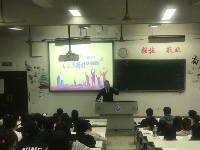 宣講會現(xiàn)場,各企業(yè)代表通過宣傳海報、PPT展示、視頻播放、現(xiàn)場互動等方式向同學(xué)們介紹了公司概況、企業(yè)文化、企業(yè)員工培養(yǎng)模式、企業(yè)目前的發(fā)展?fàn)顩r及發(fā)展前景等,與同學(xué)們作了詳盡的分享,并就招聘崗位、職業(yè)晉升、工資福利等做了詳細的解讀。同時為同學(xué)們解答了就業(yè)相關(guān)的問題,鼓勵同學(xué)們在宣講結(jié)束后積極主動到招聘企業(yè)展位處咨詢、投遞簡歷。