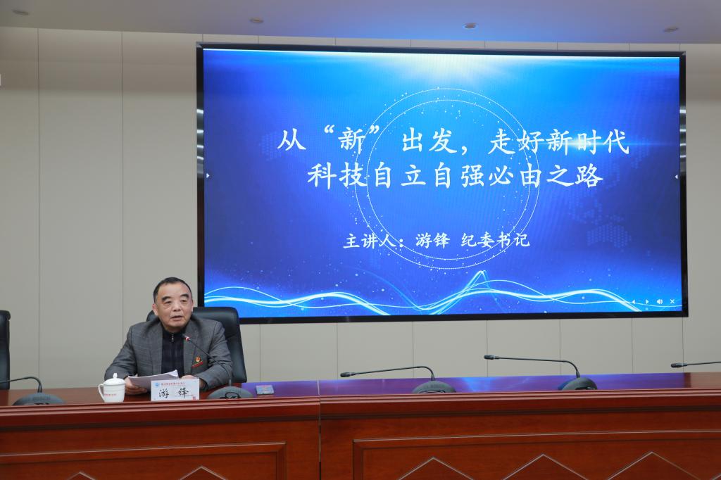 游鋒從“戰(zhàn)略博弈:世界科技競(jìng)爭(zhēng)日趨激烈”“乘風(fēng)破浪:我國(guó)科技機(jī)遇挑戰(zhàn)共存”“勇立潮頭:加快科技自立自強(qiáng)步伐”“凝‘青’聚力:彰顯科技強(qiáng)國(guó)青春擔(dān)當(dāng)”等四個(gè)方面出發(fā),詳細(xì)介紹世界科技競(jìng)爭(zhēng)趨勢(shì),分析我國(guó)科技發(fā)展的機(jī)遇和挑戰(zhàn),鼓勵(lì)廣大學(xué)子學(xué)好專(zhuān)業(yè)本領(lǐng),以?xún)?yōu)秀校友的成長(zhǎng)故事為榜樣,賡續(xù)前行。