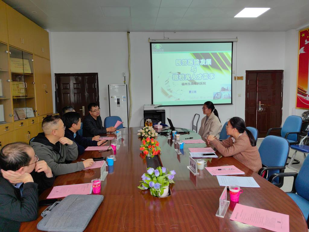 2024年度眼視光技術(shù)專業(yè)指導委員會于4月10日下午在醫(yī)學技術(shù)與工程學院三樓會議室召開。專業(yè)指導委員會成員福州東南眼科醫(yī)院副院長夏江勝,寶島眼鏡福建總經(jīng)理黃志華,福建省級機關(guān)醫(yī)院門診部主任林泰南,福州兒童醫(yī)院眼科主任高守銘,福建衛(wèi)生職業(yè)技術(shù)學院眼視光技術(shù)專業(yè)帶頭人王珊珊及其他眼視光專業(yè)教師出席并參加了本次會議。