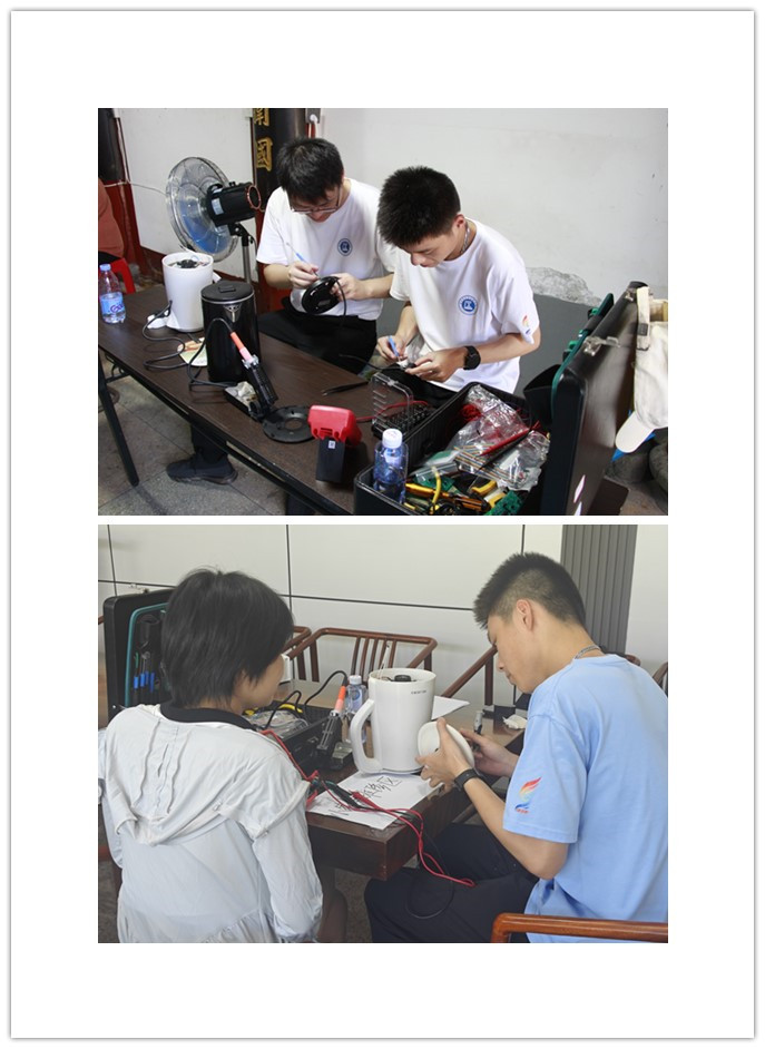 為將所學(xué)知識轉(zhuǎn)化為實(shí)踐技能服務(wù)群眾,實(shí)踐隊(duì)為當(dāng)?shù)卮迕襁M(jìn)行小家電的維修。隊(duì)員們攜帶電烙鐵、吸錫器、電容感應(yīng)測量儀等專業(yè)儀器,在專業(yè)老師的指導(dǎo)下,讓存在故障的小家電“重獲新生”,獲得了村民的一致好評。