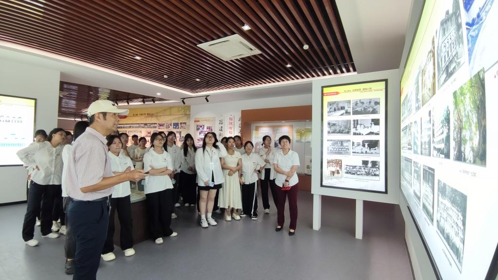 洪常青同志是學校1979級醫(yī)學大專班校友、工會原專職副主席。在這位老校友亦是老教師的帶領下,同學們參觀校史館“悠悠歲月,根深源遠”、“滄桑巨變,崛起八閩”、“立德樹人,風正帆懸”、“守正創(chuàng)新,建設示范”以及“不忘初心,行穩(wěn)致遠”五大展區(qū)。通過一樁樁學院大事記、一幅幅生動的歷史照片,一件件鮮活的歷史實物,同學們?nèi)轿涣私鈱W校辦學的崢嶸歷程,感受一代代閩衛(wèi)人的接續(xù)奮斗,領略學校百余年校史的厚重底蘊。
