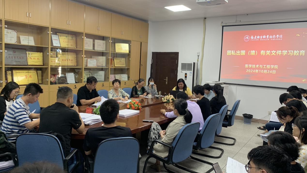 10月24日,醫(yī)學技術與工程學院組織全院教職員工因私出國(境)證件核查與學習教育工作。會上,醫(yī)工學院黨委書記柯瓊鶯結合本次因私出國(境)證件核查工作要求,就因私出國(境)相關制度規(guī)定進行集中學習,并強調了因私出國(境)管理的工作規(guī)范及紀律要求。