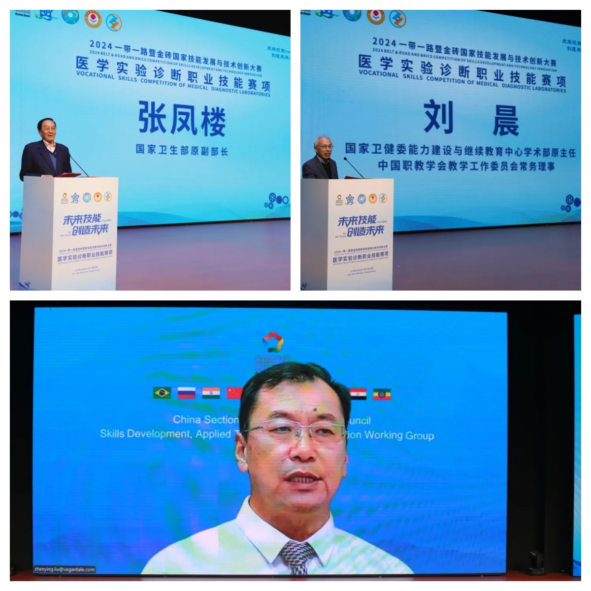 11月22日—23日,2024“一帶一路”暨金磚國(guó)家技能發(fā)展與技術(shù)創(chuàng)新大賽(簡(jiǎn)稱“金磚大賽”)首屆醫(yī)學(xué)實(shí)驗(yàn)診斷職業(yè)技能賽項(xiàng)總決賽在湖南信陽(yáng)舉行。“金磚大賽”是2017年金磚國(guó)家最高領(lǐng)導(dǎo)人會(huì)晤籌備委員會(huì)認(rèn)可、經(jīng)中華人民共和國(guó)外交部備案、金磚國(guó)家工商理事會(huì)批準(zhǔn)的國(guó)際大賽。原國(guó)家衛(wèi)生部副部長(zhǎng)張鳳樓,金磚國(guó)家技能發(fā)展與技術(shù)創(chuàng)新大賽組委會(huì)執(zhí)委會(huì)主席劉振英,國(guó)家衛(wèi)健委能力建設(shè)與繼續(xù)教育中心學(xué)術(shù)部原主任、中國(guó)職教學(xué)會(huì)教學(xué)工作委員會(huì)常務(wù)理事劉晨在開(kāi)幕式上先后發(fā)表重要講話。