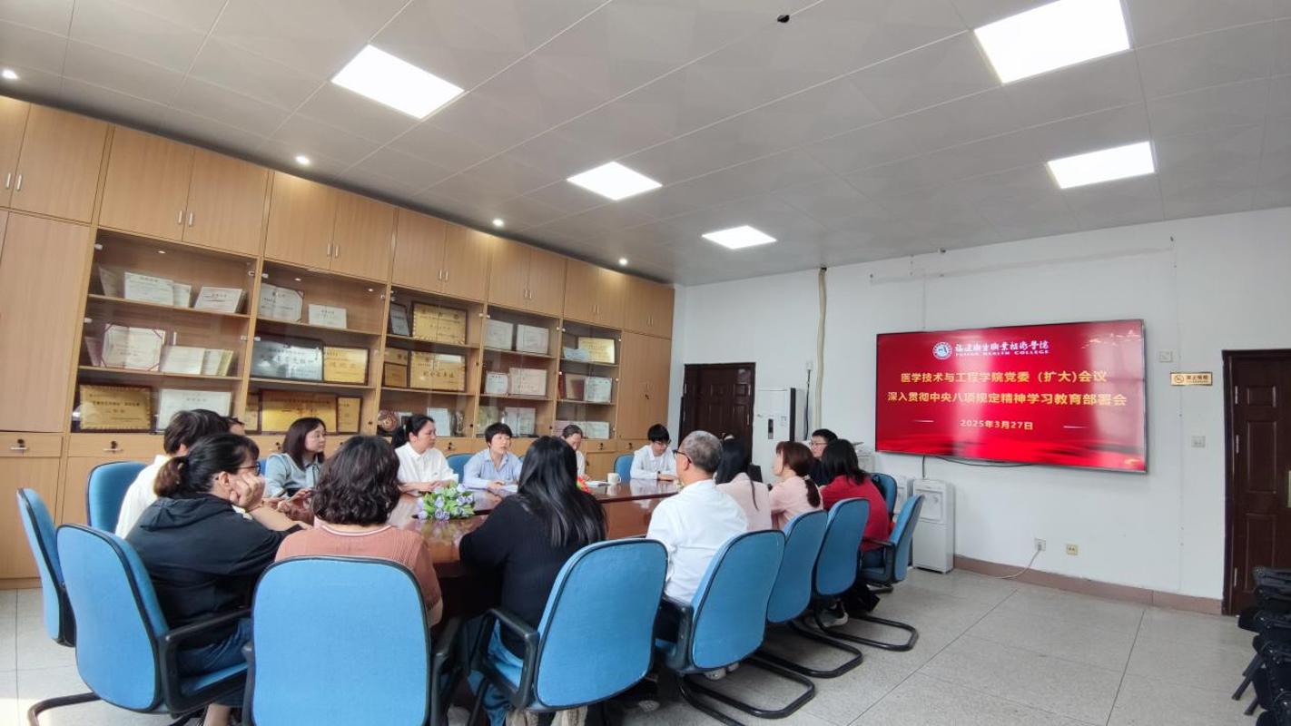 3月27日,醫(yī)學技術與工程學院召開黨委(擴大)會議,研究部署深入貫徹中央八項規(guī)定精神學習教育工作。學院黨委委員、黨支部委員參加會議,學院黨委書記柯瓊鶯主持會議。