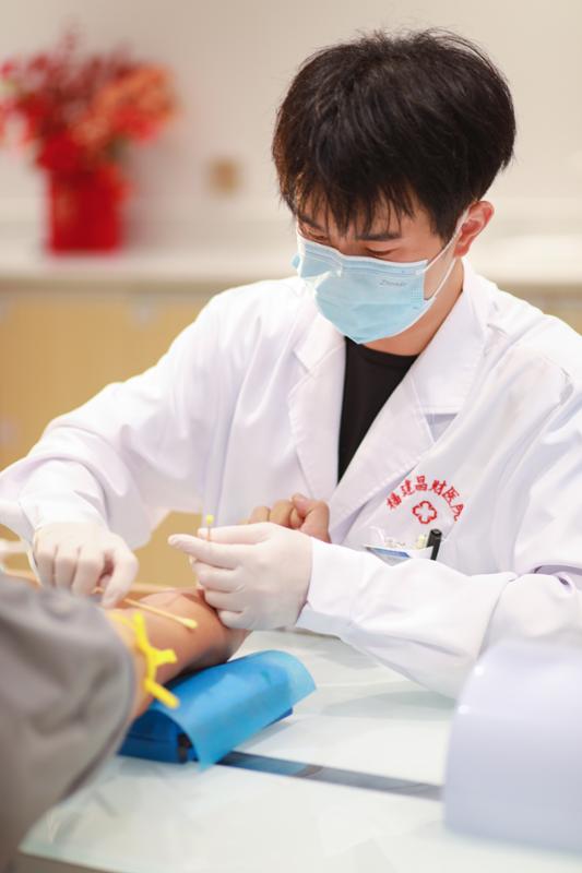 在福建衛(wèi)生職業(yè)技術(shù)學(xué)院的一堂醫(yī)學(xué)檢驗(yàn)實(shí)踐課上,指導(dǎo)老師的一句話讓黃德興突然意識(shí)到,看似簡單的采血,是檢驗(yàn)的 “第一道門檻”,采血是檢驗(yàn)工作的重要一環(huán),也是患者感受醫(yī)療服務(wù)的直接窗口。同時(shí)黃德興注意到,許多患者尤其是老人和孩子對采血存在恐懼心理。于是,他開始了長達(dá)兩年的技術(shù)鉆研。從最開始的泡沫板模擬,到在自己手臂上反復(fù)練習(xí),每天幾千次的重復(fù)訓(xùn)練讓他的手指經(jīng)常抽筋,雙臂布滿針眼和淤青。