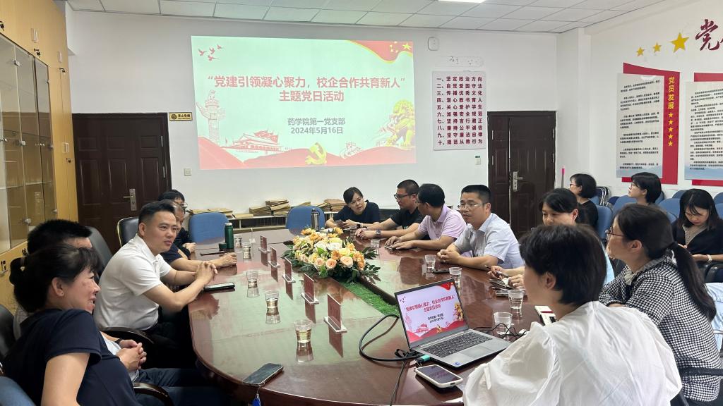 為深入學(xué)習(xí)貫徹習(xí)近平新時代中國特色社會主義思想和黨的二十大精神,進一步推進黨建引領(lǐng)產(chǎn)教融合、校企合作等業(yè)務(wù)工作開展,2024年5月16日,藥學(xué)院第一黨支部與福建瑞來春健康管理有限公司開展“黨建引領(lǐng)凝心聚力,校企合作共育人才”主題黨日活動。藥學(xué)院藥學(xué)院第一黨支部黨員與福建瑞來春堂三坊七巷館總經(jīng)理林善元、副總經(jīng)理黃裕鋒等一行行業(yè)教師參加此次活動?;顒佑芍Р扛睍洝⑿F蟀喟嘀魅瘟至嶂鞒?。