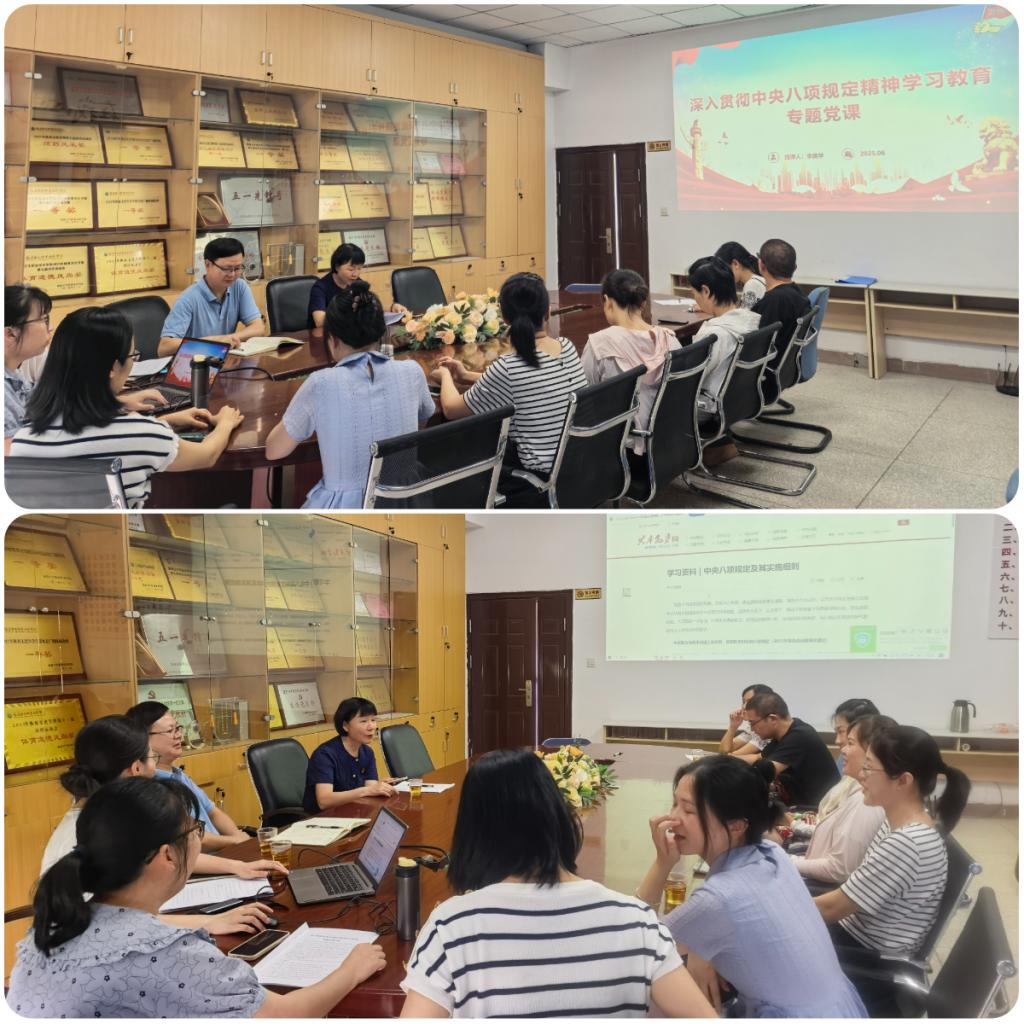 2025年6月13日,校黨委副書記李美華、藥學(xué)院第一黨支部書記羅蘭為藥學(xué)院第一黨支部全體黨員講授深入貫徹中央八項(xiàng)規(guī)定精神學(xué)習(xí)教育專題黨課,藥學(xué)院第一黨支部全體黨員到場學(xué)習(xí)。本次活動由支部書記羅蘭主持。