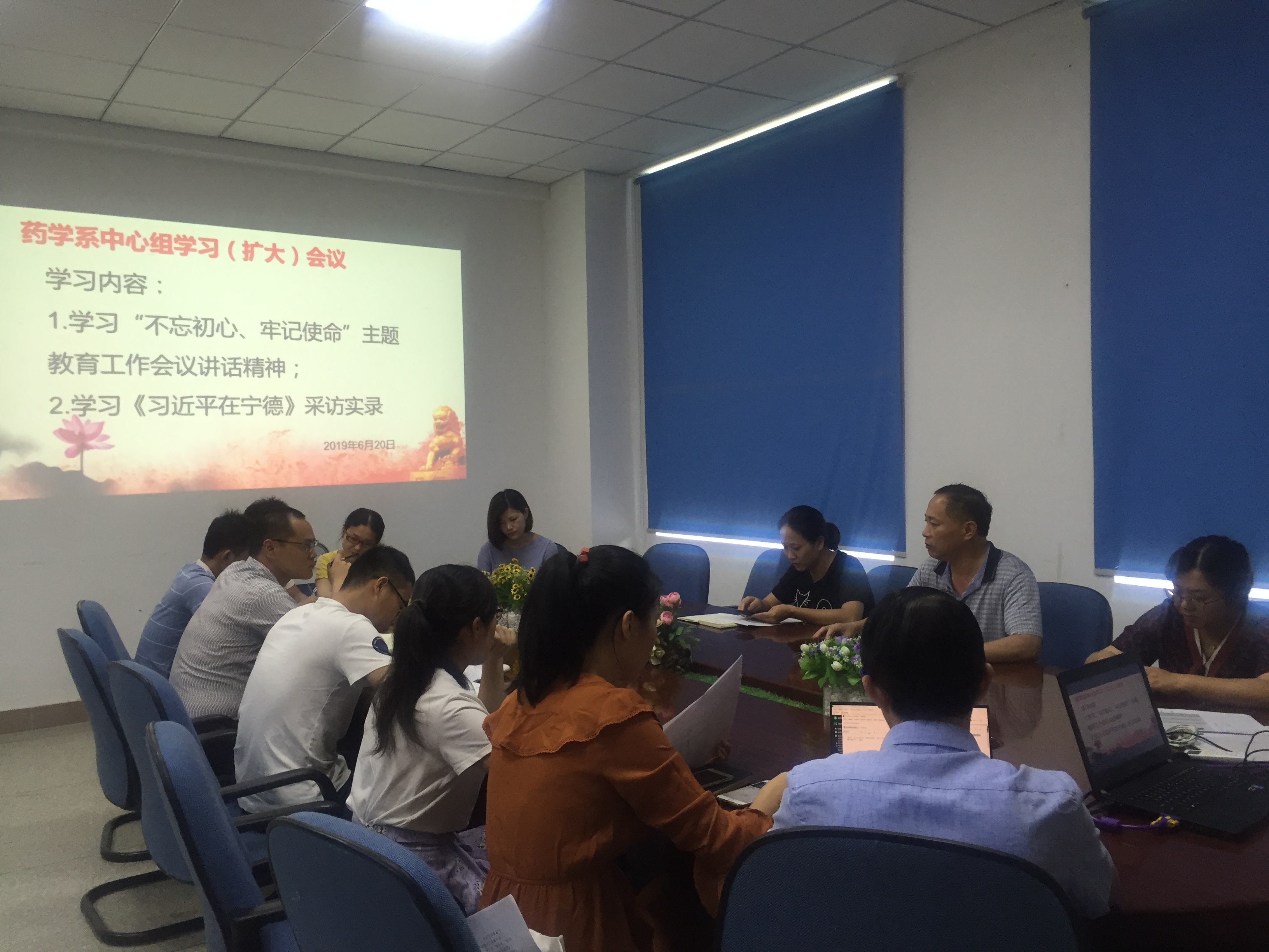 2019年6月20日藥學(xué)系中心組(擴(kuò)大)于會議室學(xué)習(xí)習(xí)近平總書記在“不忘初心、牢記使命”主題教育工作會議上的重要講話精神及《習(xí)近平在寧德》采訪實錄。會議由藥學(xué)系黨總支鄭力宏書記主持,系黨總支委員、各支部書記、全體輔導(dǎo)員參加本次學(xué)習(xí)。