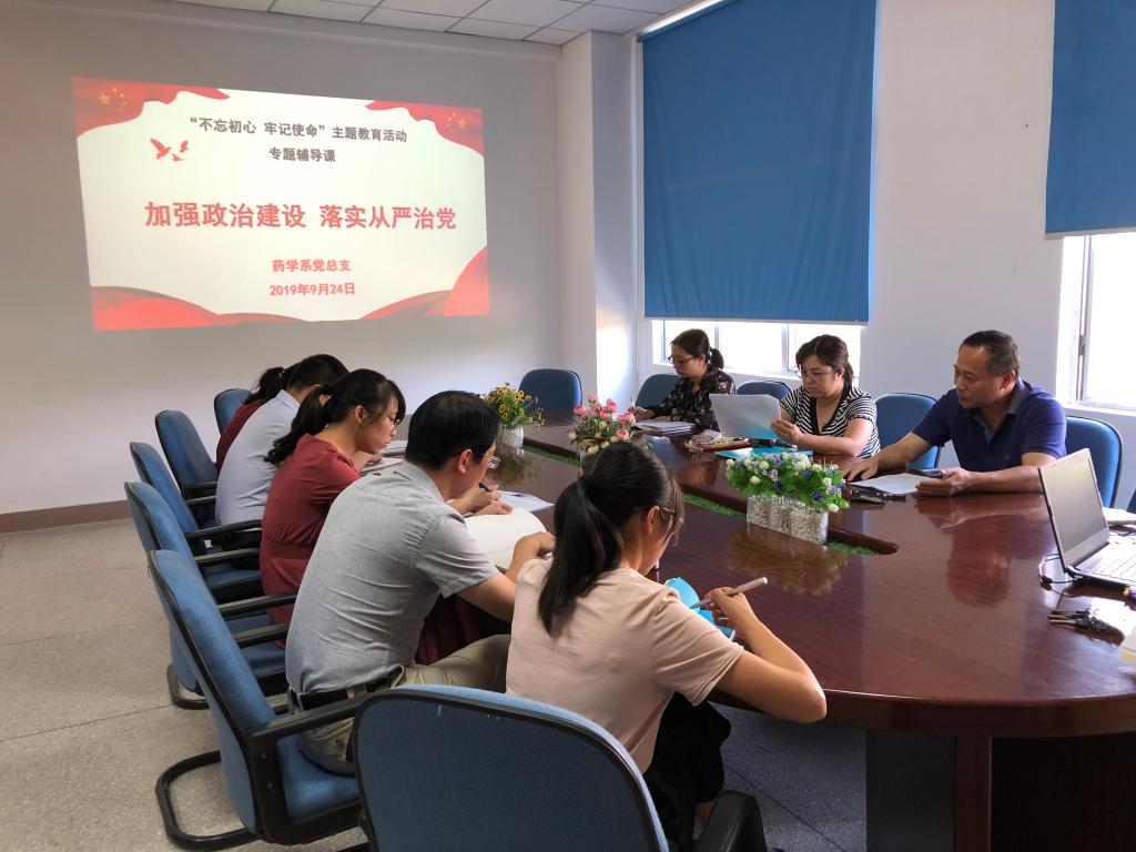 9月24日下午,藥學(xué)系黨總支在系部會議室開展第五次主題教育專題研討會暨 “加強(qiáng)雙帶頭人建設(shè),提高黨支部戰(zhàn)斗力”專題輔導(dǎo)課。藥學(xué)系黨總支書記鄭力宏主持會議,黨總支委員、支部書記參加了本次研討交流會。