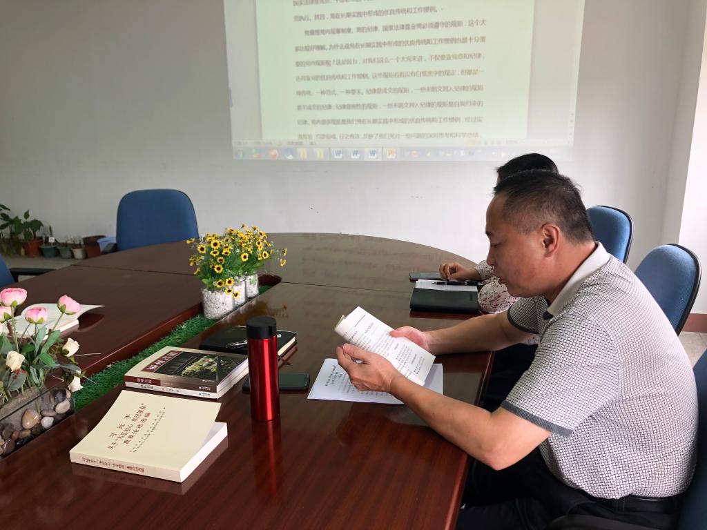 學(xué)習(xí)研討中,鄭力宏同志領(lǐng)學(xué)了《習(xí)近平關(guān)于“不忘初心、牢記使命”論述摘編》中的《加強(qiáng)紀(jì)律建設(shè),把守紀(jì)律講規(guī)矩?cái)[在更加重要的位置》、《中國(guó)共產(chǎn)黨黨內(nèi)重要法規(guī)匯編》的《中國(guó)共產(chǎn)黨廉潔自律準(zhǔn)則》、《中國(guó)共產(chǎn)黨紀(jì)律處分條例》和《中國(guó)共產(chǎn)黨問(wèn)責(zé)條例》。系黨政班子成員緊扣“嚴(yán)明紀(jì)律規(guī)矩,永葆清廉本色”主題,聯(lián)系工作實(shí)際,分享了各自的學(xué)習(xí)心得和體會(huì)。