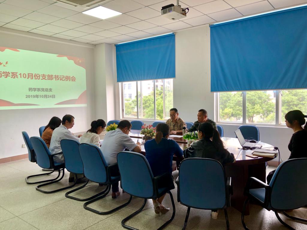 2019年10月24日,藥學(xué)系黨總支在會議室召開10月份支部書記例會,會議由藥學(xué)系黨總支書記鄭力宏同志主持。