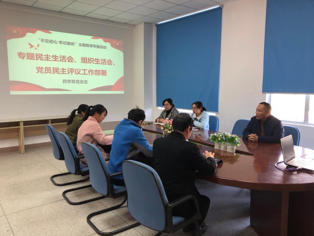 2019年12月3日,藥學(xué)系黨總支于系部會議室召開專題民主生活會、組織生活會、民主評議黨員工作部署會,藥學(xué)系黨總支委員、各黨支部書記到場參會,會議由藥學(xué)系黨總支書記鄭力宏主持。