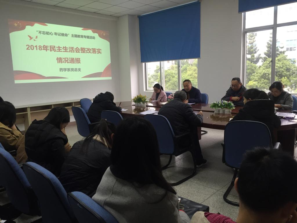 2019年12月5日,藥學(xué)系黨總支在系部會(huì)議室召開2018年民主生活會(huì)整改落實(shí)情況反饋會(huì),藥學(xué)系全體教職工到場(chǎng)參會(huì),會(huì)議由藥學(xué)系黨總支鄭力宏書記主持。