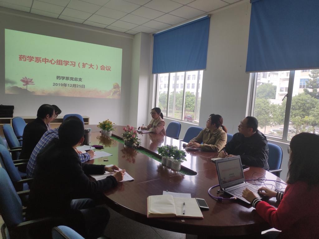 2019年12月25日,藥學(xué)系黨總支在系部會(huì)議室召開中心組學(xué)習(xí)(擴(kuò)大)會(huì)議,會(huì)議由藥學(xué)系黨總支副書記賴文金主持。