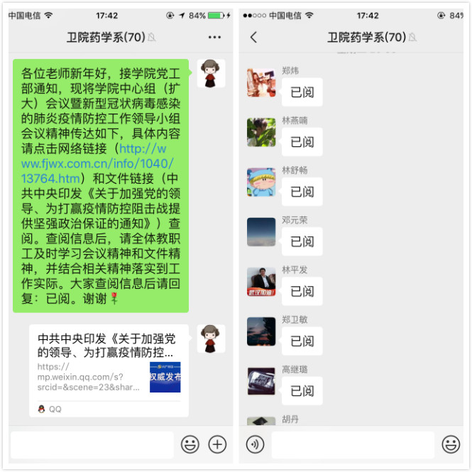 通過(guò)學(xué)習(xí),藥學(xué)系全體師生紛紛表示面對(duì)疫情,將堅(jiān)定必勝信心,在做好自我防護(hù)的同時(shí),堅(jiān)決做到不造謠、不傳謠、不信謠。藥學(xué)系黨總支書記鄭力宏強(qiáng)調(diào):我們要堅(jiān)信在黨中央的集中統(tǒng)一領(lǐng)導(dǎo)下,定能打贏防控疫情阻擊戰(zhàn),作為一名教育工作者,在突如其來(lái)的疫情面前,雖然我們不能像醫(yī)務(wù)人員一樣戰(zhàn)斗在一線,但我們可以積極開展防疫宣傳,配合院系領(lǐng)導(dǎo)對(duì)學(xué)生進(jìn)行思想教育,避免疫情在學(xué)生中擴(kuò)散并引起恐慌,特別是黨員同志,必須挺身而出,以“帶好頭”的心態(tài)沖鋒陷陣,扛起責(zé)任,為防控新型冠狀病毒感染的肺炎疫情盡點(diǎn)綿薄之力,全力保護(hù)師生身體健康和生命安全!