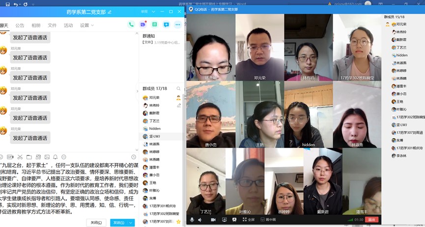 3月19日,藥學(xué)系第二黨支部全體成員準(zhǔn)時(shí)上線,在支部書記鄧元榮同志的組織下開展線上專題學(xué)習(xí)。此次專題學(xué)習(xí)主要圍繞《習(xí)近平總書記在決戰(zhàn)決勝脫貧攻堅(jiān)座談會(huì)上的講話》、《習(xí)近平總書記給首鋼醫(yī)院實(shí)習(xí)的西藏大學(xué)醫(yī)學(xué)院學(xué)生的回信》、《教育部辦公廳關(guān)于學(xué)習(xí)宣傳和貫徹實(shí)施<新時(shí)代高等學(xué)校政治理論課建設(shè)隊(duì)伍規(guī)定>的通知》等七份材料展開。