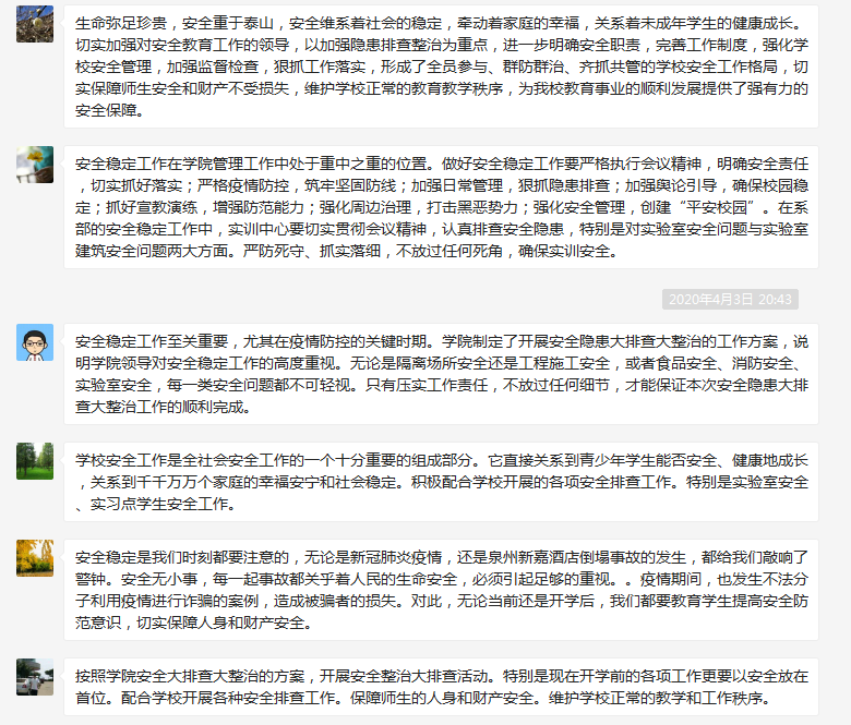 2020年4月3日,藥學(xué)系黨總支在微信群召開2020年第一季度安全穩(wěn)定工作會議,藥學(xué)系黨總支書記鄭力宏、副主任(主持工作)肖健、黨總支副書記賴文金、總支委員、各支部書記、實訓(xùn)中心主任參加會議,會議由黨總支書記鄭力宏主持。