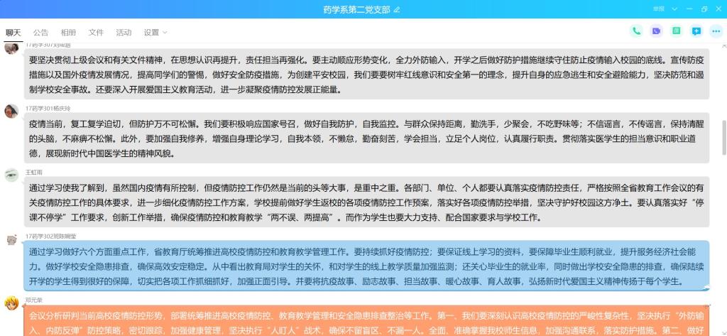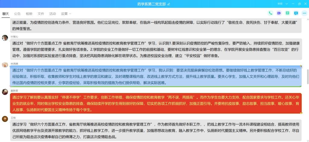 為了加深對(duì)疫情防控工作嚴(yán)峻性的認(rèn)識(shí),進(jìn)一步做好疫情防控期間線上教育教學(xué)管理工作,2020年4月3日,藥學(xué)系第二黨支部組織全體成員在微信群集中學(xué)習(xí)福建省教育廳統(tǒng)籌推進(jìn)高校疫情防控和教育教學(xué)管理工作視頻會(huì)議精神。