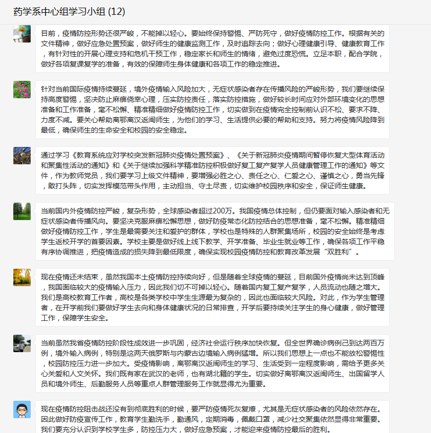 2020年4月16日,藥學(xué)系黨總支在微信群召開中心組學(xué)習(xí)(擴(kuò)大)會(huì)議,會(huì)議由藥學(xué)系黨總支書記鄭力宏主持。