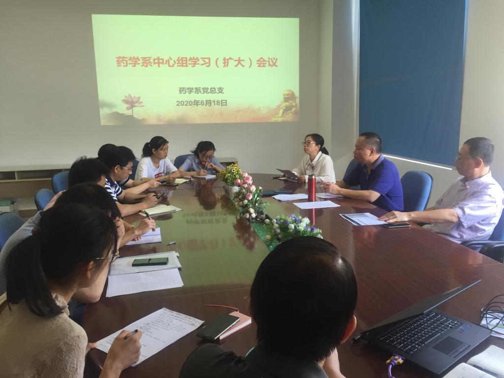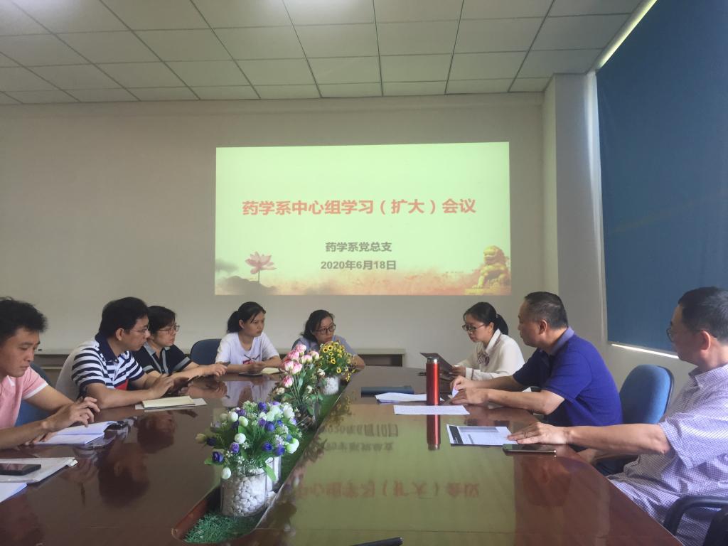 2020年6月18日,藥學(xué)系黨總支在系部會議室召開中心組學(xué)習(xí)(擴(kuò)大)會議,會議由藥學(xué)系黨總支書記鄭力宏主持。