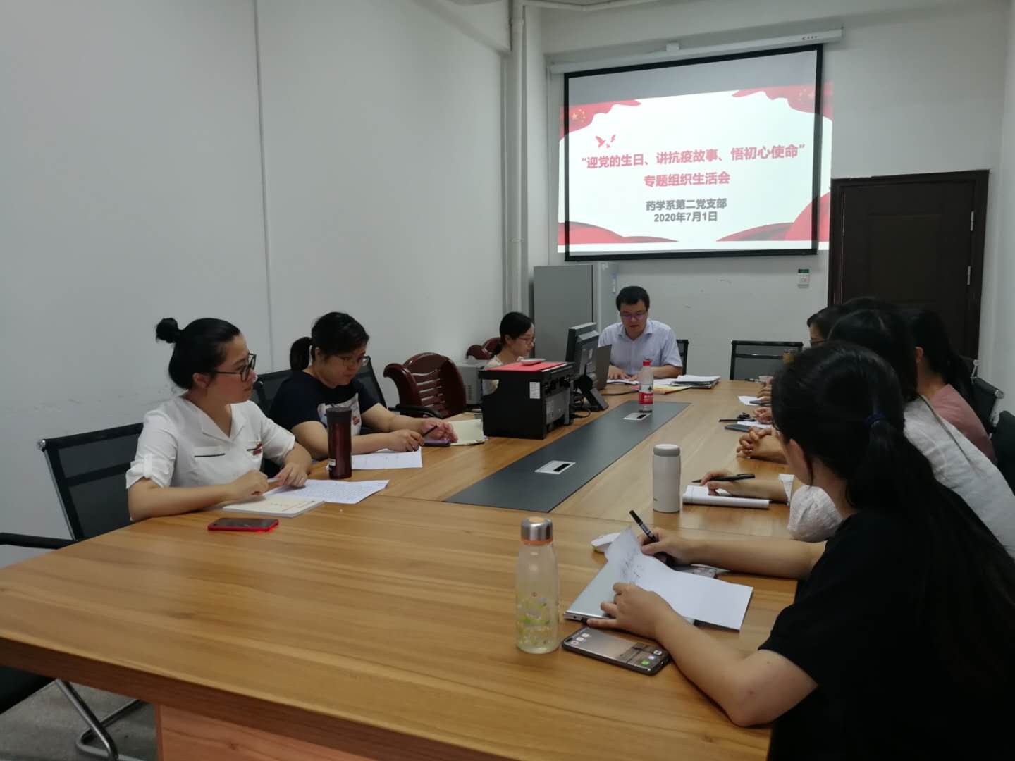 2020年7月1日,為慶祝中國(guó)共產(chǎn)黨成立99周年,藥學(xué)系第二黨支部召開召開“迎黨的生日、講戰(zhàn)役故事、悟初心使命”專題組織生活會(huì),各黨員齊聚系部202會(huì)議室,分享身邊的“抗疫”故事。本次會(huì)議由支部書記鄧元榮同志主持。