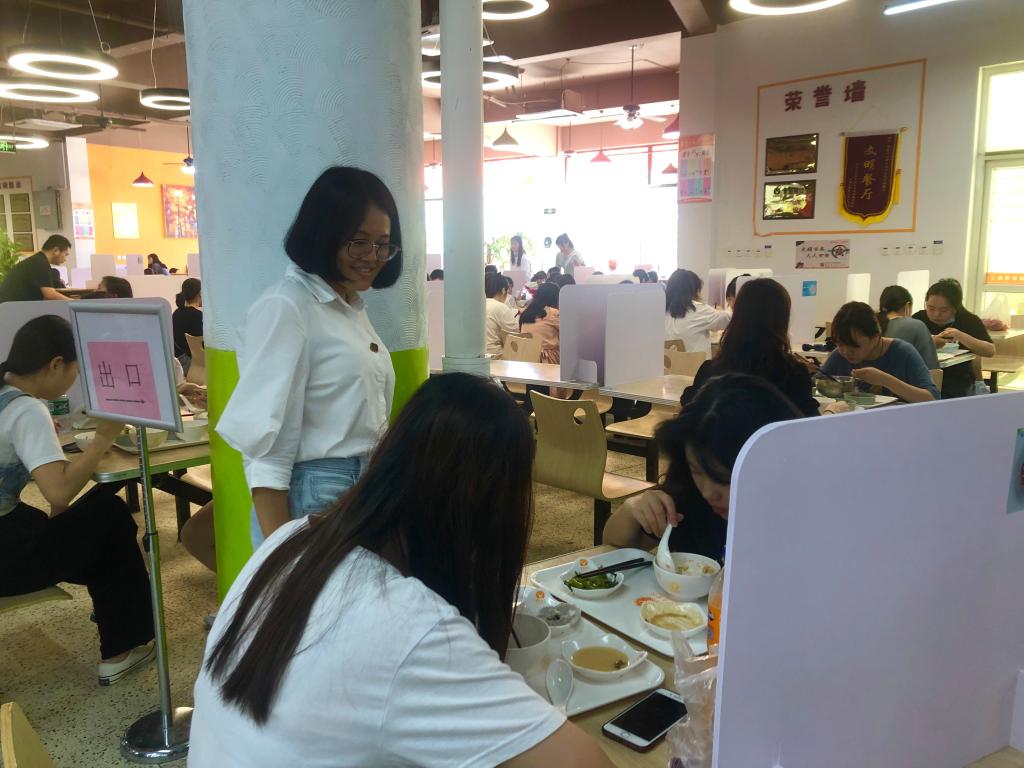 在支部書記鄧元榮同志的倡議下,支部黨員以實(shí)際行動響應(yīng)號召,午餐期間,分組前往學(xué)院各個食堂開展文明督導(dǎo)。葉雅沁、丁藝蘭等同志來到第一餐廳為光盤的同學(xué)點(diǎn)贊,對浪費(fèi)的行為進(jìn)行督促,引導(dǎo)學(xué)生厲行節(jié)約,杜絕舌尖上的浪費(fèi);李泳寧、朱宏陽與唐小巒同志前往明湖餐廳,倡導(dǎo)同學(xué)們“打飯打菜要適量,盤中飯菜要吃光,從我做起。”