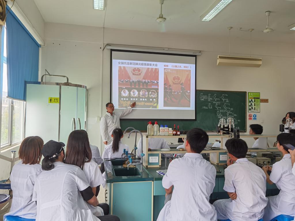 2020年10月12日,藥學(xué)系肖健副主任在系部408教室為19級(jí)學(xué)生講授以《同心戰(zhàn)“疫” 共筑中國(guó)力量》為題的形勢(shì)與政策課。