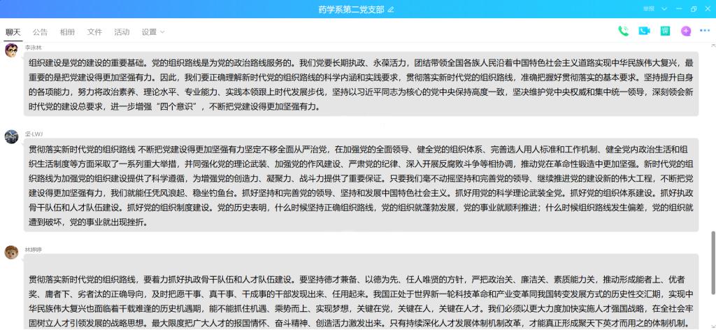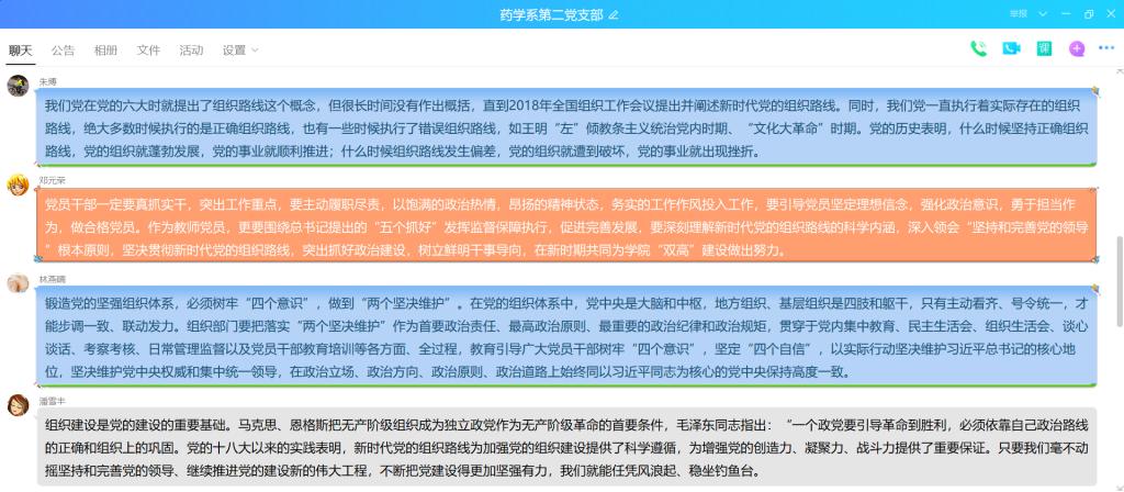 2020年8月10日,藥學系第二黨支部通過支部QQ群開展線上專題學習,全體黨員集中學習《習近平:貫徹落實新時代黨的組織路線 不斷把黨建設得更加堅強有力》,本次學習由支部書記鄧元榮同志主持。