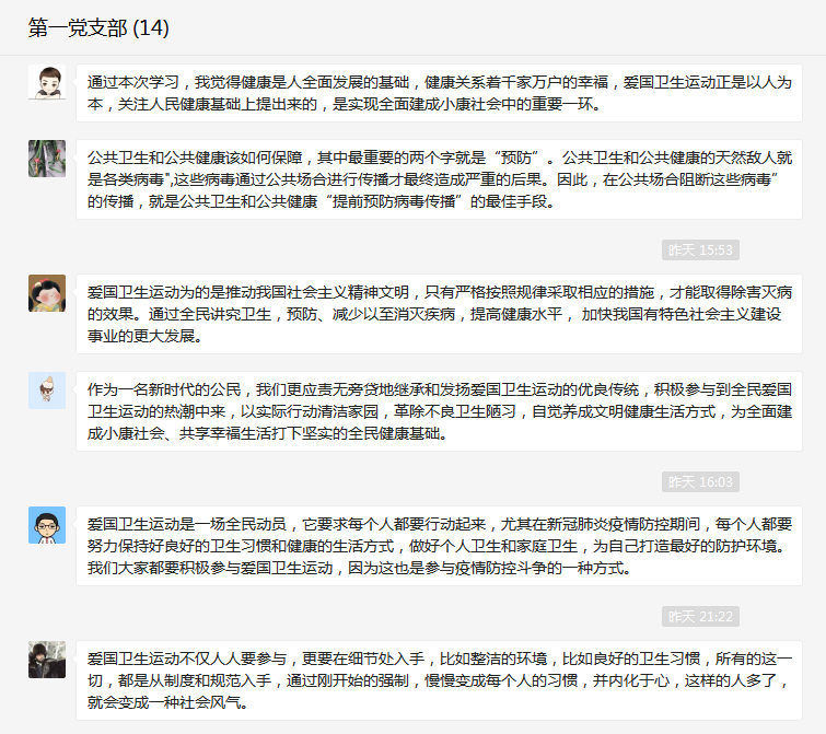 通過交流學習,黨員同志對于新時代開展愛國衛(wèi)生運動有了更深刻的認識,新時代開展愛國衛(wèi)生運動,要堅持預防為主,創(chuàng)新方式方法,從我做起,從身邊的小事做起,倡導文明健康、綠色環(huán)保的生活方式。