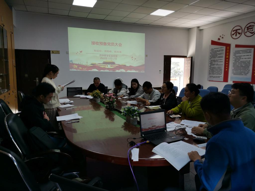 為進(jìn)一步夯實(shí)黨員隊(duì)伍建設(shè),吸收新鮮血液,11月12日,藥學(xué)院學(xué)生黨支部于藥學(xué)系207會議室召開接收預(yù)備黨員大會,討論關(guān)于周維峰、楊麗珍、楊育雄等3名同志考察期滿擬轉(zhuǎn)中共預(yù)備黨員事宜。大會由支部陳翰書記主持,支部黨員出席會議。
