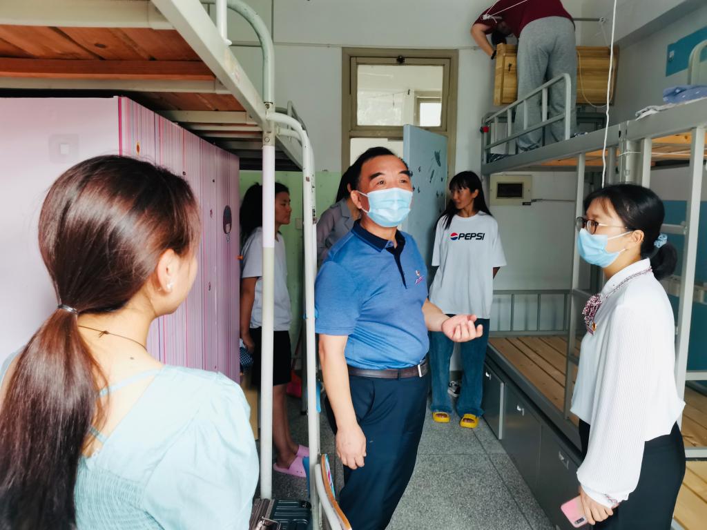 學校紀委游鋒書記和藥學院黨總支鄭力宏書記,賴文金副書記也早早來到藥學院迎新點,還為偏遠地區(qū)新生送上“愛心禮包”。隨后游鋒書記帶隊走訪了藏族新生宿舍,詢問他們生活物資準備情況以及生活習慣問題,并歡迎孩子們加入衛(wèi)院藥學院大家庭。
