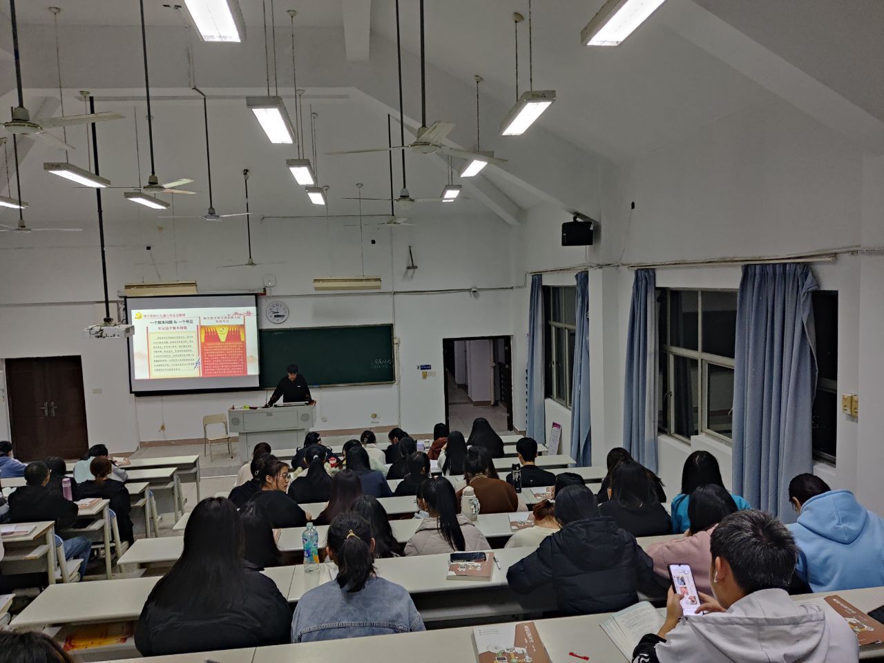 主題班會上,輔導員們向同學們介紹了黨的十九屆六中全會精神和省第十一次黨代會召開的背景和重要意義。接著,同學們通過圖片及文字了解并學習了黨的十九屆六中全會精神和省第十一次黨代會精神,并且分享了各自了解到的在中國共產(chǎn)黨帶領(lǐng)下取得的舉世矚目的成就。會后,同學們紛紛表示,要利用課余時間認真領(lǐng)會黨的十九屆六中全會精神和省第十一次黨代會的重要精神,將理論知識學深悟透、精讀細研,運用于實際。