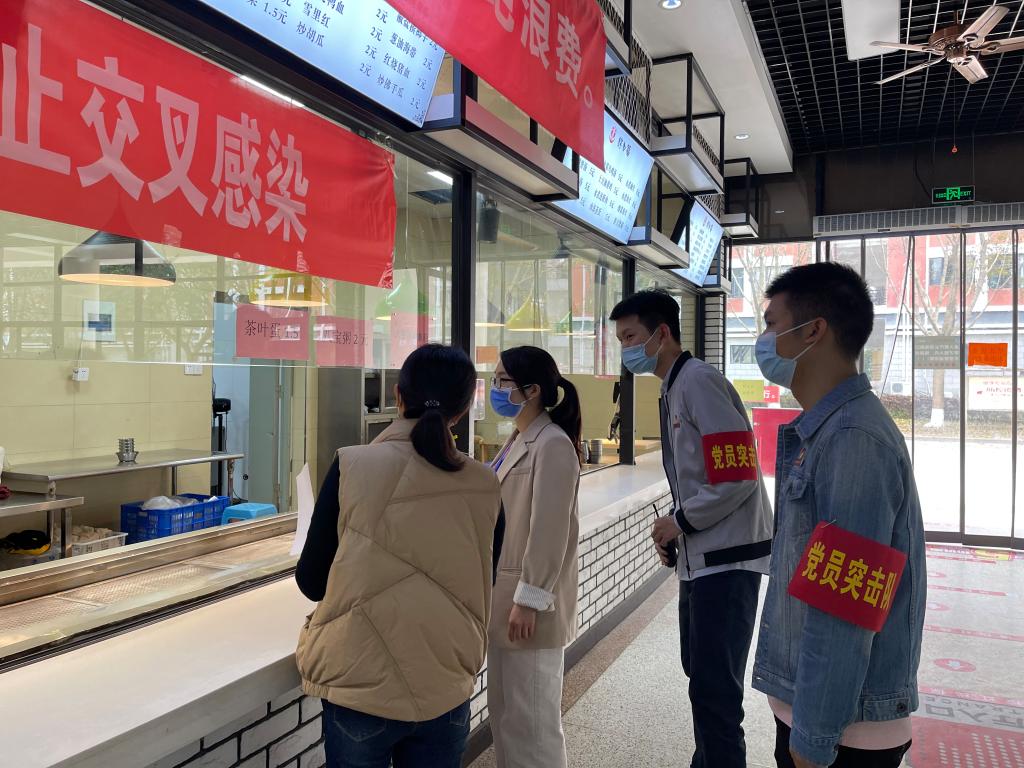 為配合學(xué)校紀(jì)檢部門落實(shí)各項(xiàng)疫情防控措施的情況,我院黨員突擊隊(duì)對(duì)學(xué)校食堂、超市、驛站等區(qū)域進(jìn)行實(shí)地走訪,了解不同區(qū)域疫情防控工作情況,并針對(duì)工作中存在的薄弱環(huán)節(jié)和問題向相關(guān)部門提交反饋。