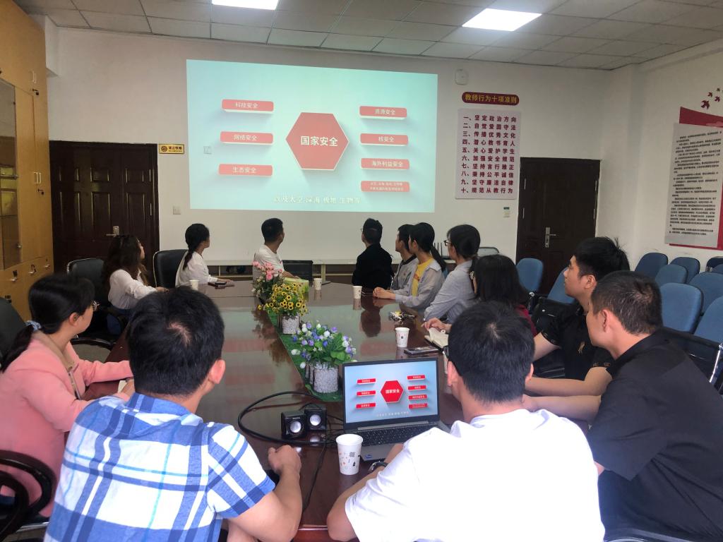 學生第一黨支部書記鄭衛(wèi)敏帶領(lǐng)學生支部全體黨員集體學習了習近平總書記關(guān)于堅持總體國家安全觀的重要講話和相關(guān)法律法規(guī),觀看《中華人民共和國國家安全法》視頻解讀材料,增強維護國家安全的法律意識。