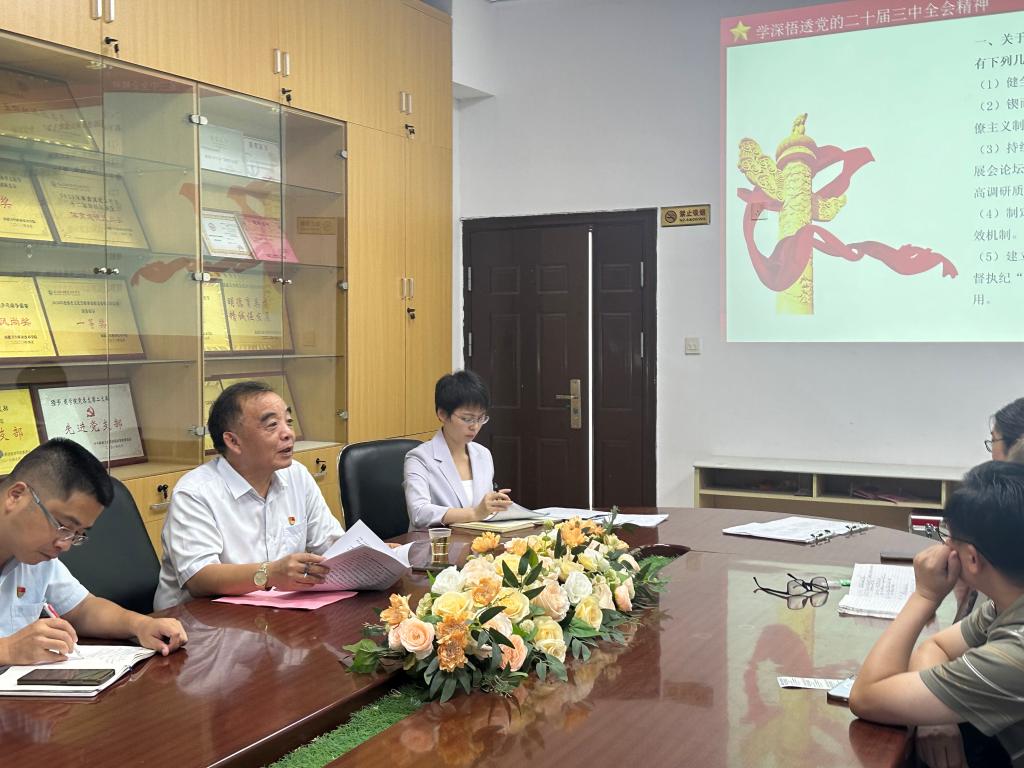 游鋒從“學(xué)深悟透黨的二十屆三中全會(huì)精神,推動(dòng)全面從嚴(yán)治黨走深走實(shí)”、“以案為鑒、警鐘長鳴,推動(dòng)黨紀(jì)學(xué)習(xí)教育常態(tài)長效”、“堅(jiān)守初心使命,持續(xù)推進(jìn)黨風(fēng)廉政建設(shè)工作”等三個(gè)方面出發(fā),帶領(lǐng)藥學(xué)院教師深入學(xué)習(xí)黨的二十屆三中全會(huì)精神,把學(xué)習(xí)貫徹黨的二十屆三中全會(huì)精神深度融合于日常教學(xué)的工作實(shí)踐之中,緊密對(duì)接立德樹人的根本任務(wù),以及校園廉潔文化的全面構(gòu)建。