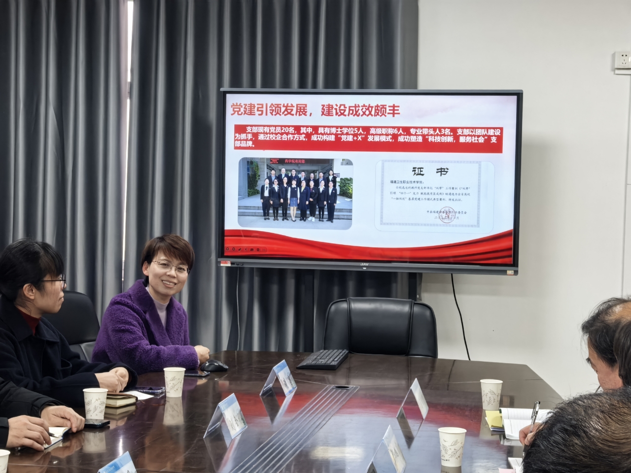 第二黨支部劉丹丹書(shū)記詳細(xì)介紹了支部黨建工作推進(jìn)情況、特色舉措以及獲得的各項(xiàng)榮譽(yù),分享了以強(qiáng)化團(tuán)隊(duì)建設(shè)為基石,努力構(gòu)建“黨建+X”創(chuàng)新發(fā)展模式,著力塑造“科技創(chuàng)新,服務(wù)社會(huì)”支部品牌的經(jīng)驗(yàn)做法,闡述了黨建工作在推動(dòng)學(xué)院發(fā)展、促進(jìn)黨建業(yè)務(wù)融合中的關(guān)鍵作用。福建農(nóng)業(yè)職業(yè)技術(shù)學(xué)院經(jīng)濟(jì)管理學(xué)院與會(huì)代表對(duì)支部工作經(jīng)驗(yàn)做法表示高度認(rèn)同。其后,雙方圍繞校企共建、學(xué)生就業(yè)、課程建設(shè)等領(lǐng)域展開(kāi)熱烈討論,相互學(xué)習(xí)、相互啟發(fā)。
