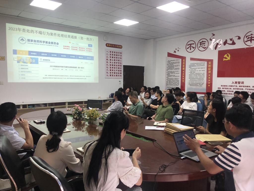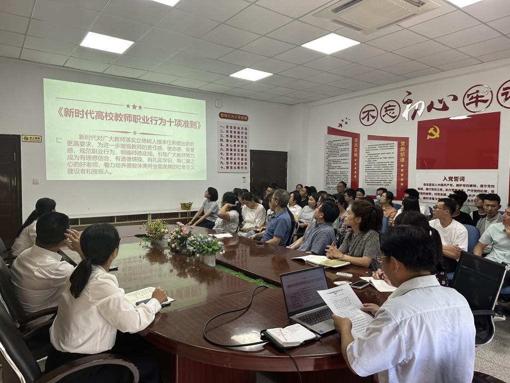 為進(jìn)一步加強(qiáng)學(xué)校師德師風(fēng)建設(shè),引導(dǎo)廣大教職工牢固樹立“以德立身、以德立學(xué)、以德施教、以德育德”教育理念,爭做“四有”好老師,2023年6月29日下午在藥學(xué)院會議室,我院組織全體教職員工重點學(xué)習(xí)了《習(xí)近平總書記關(guān)于教育的重要論述》、新時代教師職業(yè)行為十項準(zhǔn)則等系列師德規(guī)范等內(nèi)容,同時進(jìn)行了學(xué)術(shù)誠信與師德師風(fēng)專題學(xué)習(xí),學(xué)習(xí)會由李泳寧副院長主持。