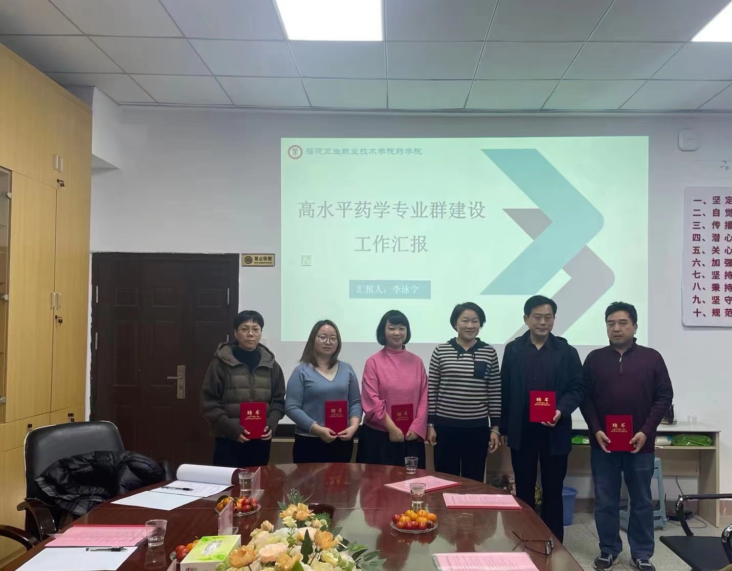 會議伊始,藥學(xué)專業(yè)群建設(shè)指導(dǎo)委員會主任朱扶蓉副校長為校外專業(yè)群建設(shè)指導(dǎo)委員會委員頒發(fā)聘書。