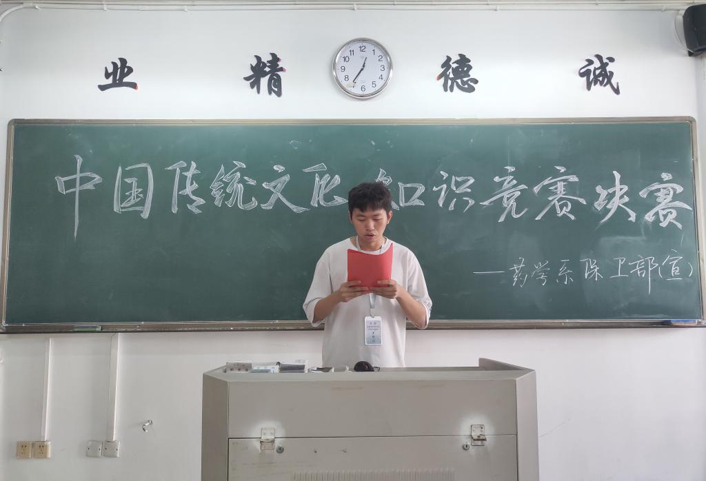 為弘揚中華民族優(yōu)秀傳統(tǒng)文化,將社會主義核心價值觀教育與中國優(yōu)秀傳統(tǒng)文化教育相結(jié)合,使中國優(yōu)秀傳統(tǒng)文化在學(xué)生中實現(xiàn)內(nèi)化于心、外化于行的良好效果,10月23日,藥學(xué)系在教學(xué)樓307舉行中國傳統(tǒng)文化知識競賽總決賽。