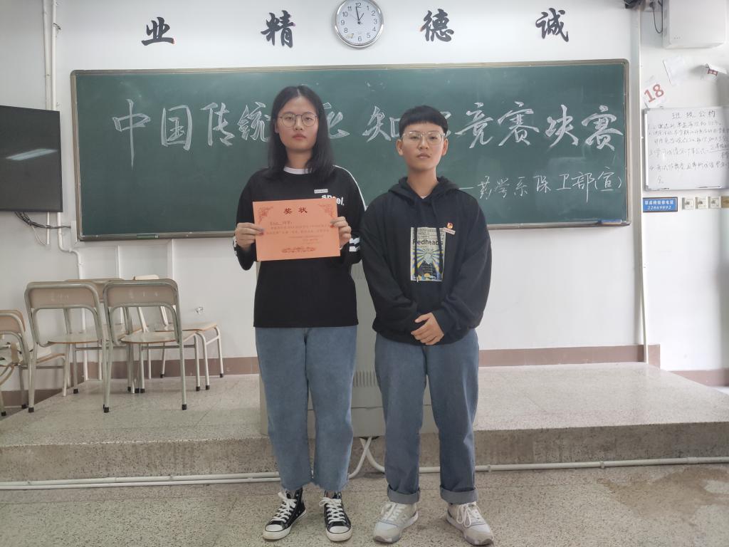 競賽經(jīng)過初賽的選拔,十位選手脫穎而出進入決賽。決賽采用游戲互動問答的方式,主要考察選手們對中國優(yōu)秀傳統(tǒng)文化基礎(chǔ)知識掌握情況以及自身頭腦靈敏反應(yīng)程度。問答題型分為選擇題及判斷題。最終,19藥經(jīng)管302班曾淑英同學(xué)榮獲一等獎,19中藥301班劉曉玲同學(xué)榮獲二等獎,16藥學(xué)501班杜欣怡同學(xué)榮獲三等獎。