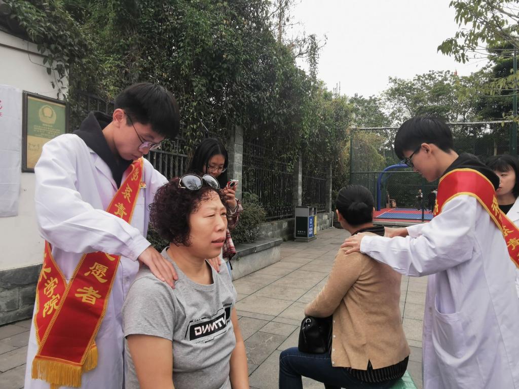 當(dāng)天上午,學(xué)生志愿者們早早來到左海公園門口,布置現(xiàn)場并擺好所需器材,準(zhǔn)備迎接社區(qū)居民的到來。此次活動有量血壓、測血糖、急救知識宣講與演示、按摩拔罐等義診項(xiàng)目?;顒娱_始不久,排隊(duì)居民就絡(luò)繹不絕。志愿者們認(rèn)真、熱情地為每一位居民朋友提供義診服務(wù),并對居民咨詢的問題一一給予解答。同時,還提醒前來義診的老年人要定期進(jìn)行體檢,鼓勵他們要樹立積極樂觀的生活態(tài)度,對部分存在亞健康的年輕人建議要規(guī)律作息時間,合理搭配飲食,養(yǎng)成健康的生活習(xí)慣。