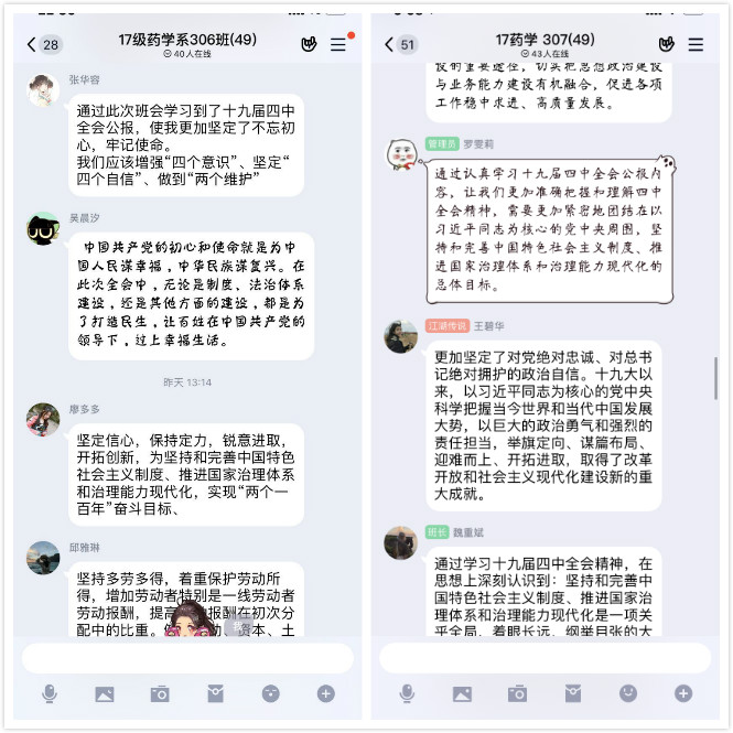 為深入學(xué)習(xí)貫徹黨的十九屆四中全會精神,以及習(xí)近平總書記關(guān)于疫情防控工作的重要講話精神,藥學(xué)系于2020年3月初開展了以“學(xué)習(xí)十九屆四中全會會議精神”為主題的線上團(tuán)日活動,做到理論學(xué)習(xí)“不斷線”。