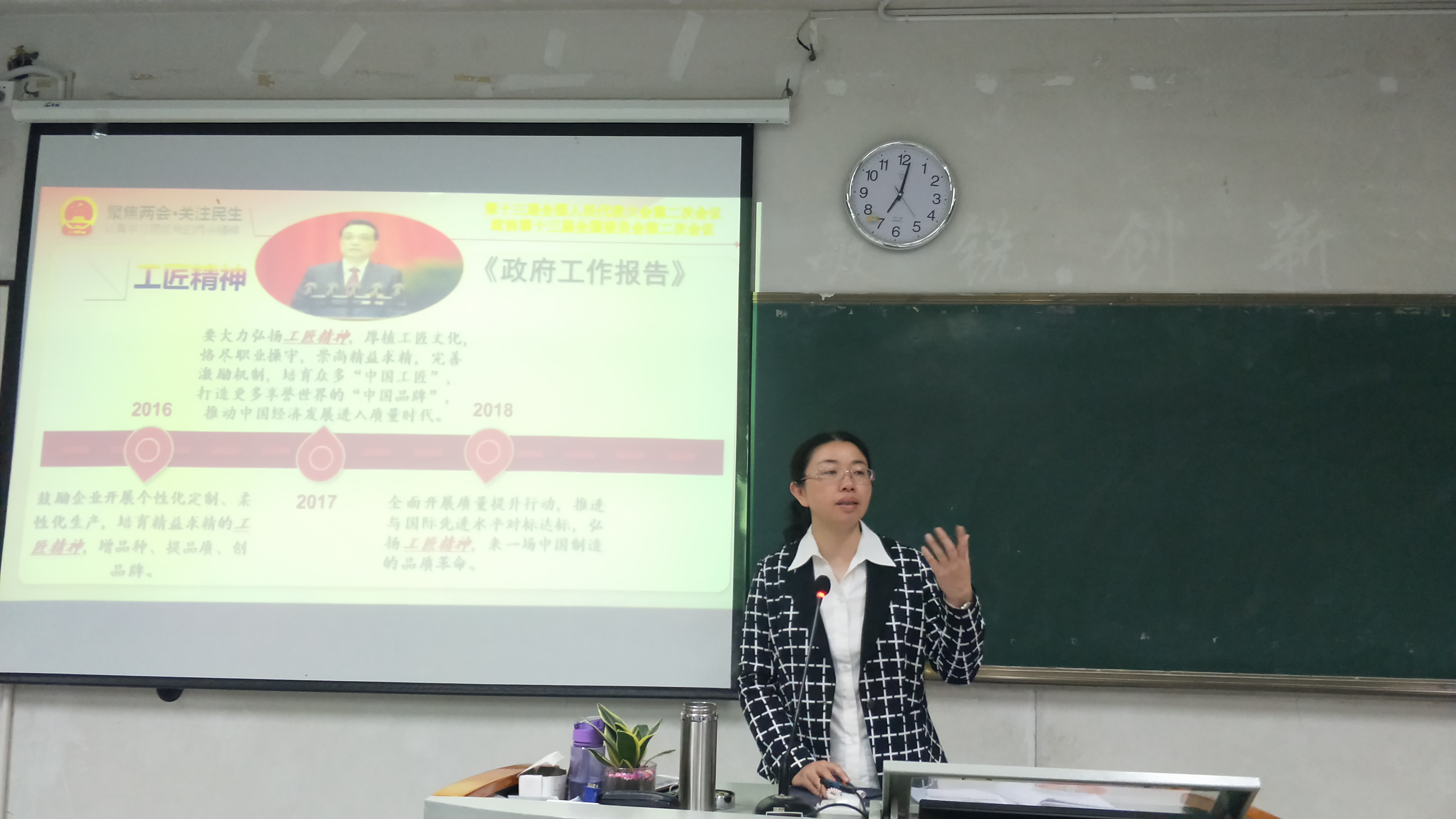 黃銘珊副院長以“什么是兩會”為開端,分別從兩會概況、兩會看點(diǎn)、政府工作報(bào)告主要內(nèi)容與特點(diǎn)、熱點(diǎn)政策解讀等方面,多角度地介紹了2019全國兩會的主要議程和內(nèi)容,并結(jié)合當(dāng)下世情國情深入闡釋了兩會精神的深刻內(nèi)涵,讓同學(xué)們對兩會精神有了一個(gè)全面準(zhǔn)確的理解和把握。與此同時(shí)結(jié)合學(xué)院實(shí)際,詳細(xì)闡述工匠精神內(nèi)涵,并結(jié)合習(xí)近平總書記在改革開放40周年大會的金句:“偉大夢想不是等得來、喊得來的,而是拼出來、干出來的”,與師生共勉。最后,黃銘珊副院長對同學(xué)們提出三點(diǎn)要求,一是要精于學(xué)業(yè),掌握專業(yè)醫(yī)學(xué)技能;二是要勤于錘煉,發(fā)揚(yáng)新時(shí)代工匠精神;三是要勇于擔(dān)當(dāng),煥發(fā)青年絢麗光彩。她希望同學(xué)們矚目全國兩會,聚力逐夢,聆聽為未來中國發(fā)展共謀圖強(qiáng)的“兩會好聲音”,凝聚同心筑夢的精神力量,在新征程上向著美好的夢想不斷奮進(jìn)。