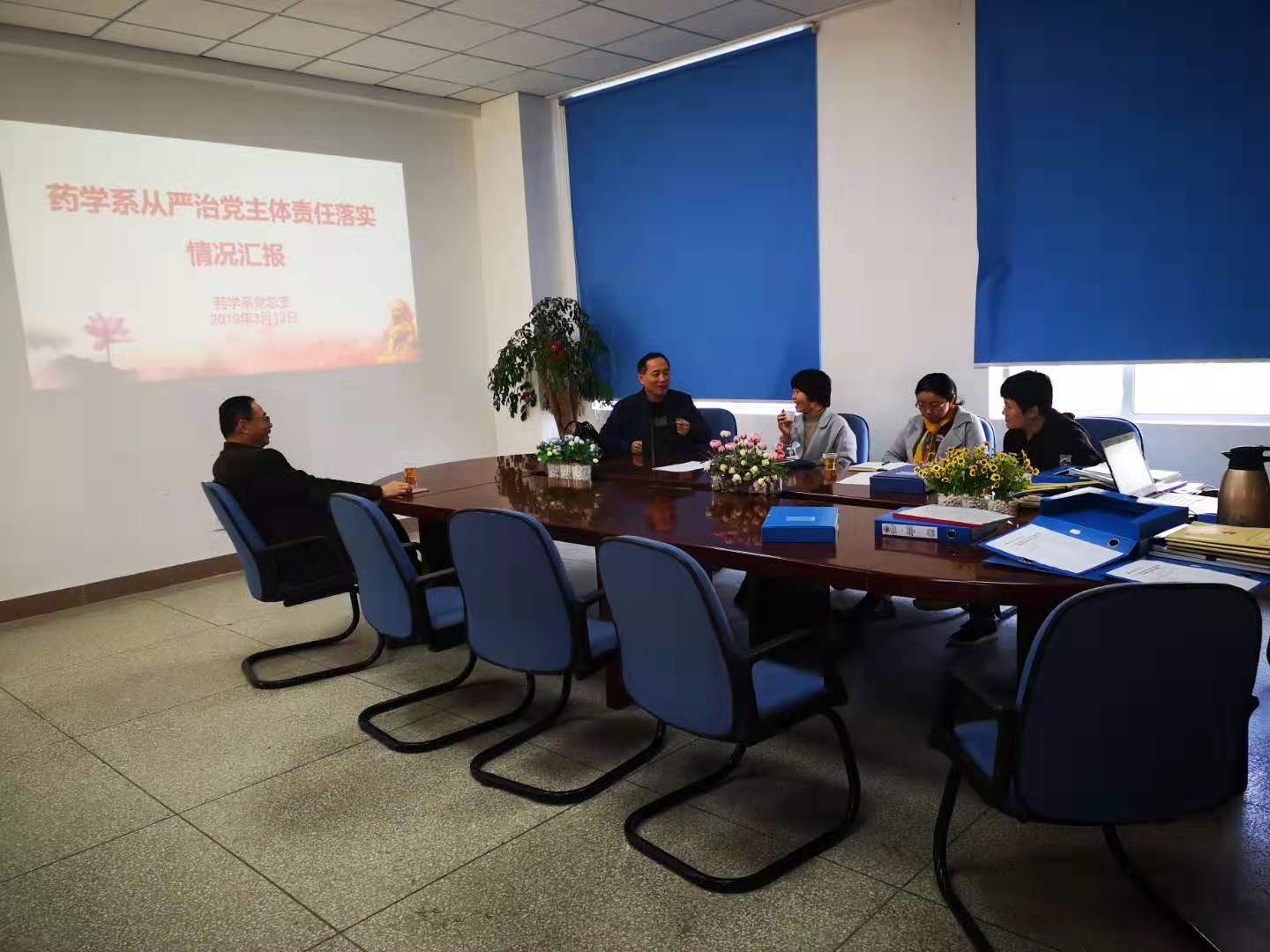 3月12日上午,學(xué)院黃銘珊副院長、黨工部黃小芳科長帶領(lǐng)督查小組蒞臨藥學(xué)系,對(duì)藥學(xué)系2018年度全面從嚴(yán)治黨主體責(zé)任落實(shí)情況進(jìn)行專項(xiàng)檢查。