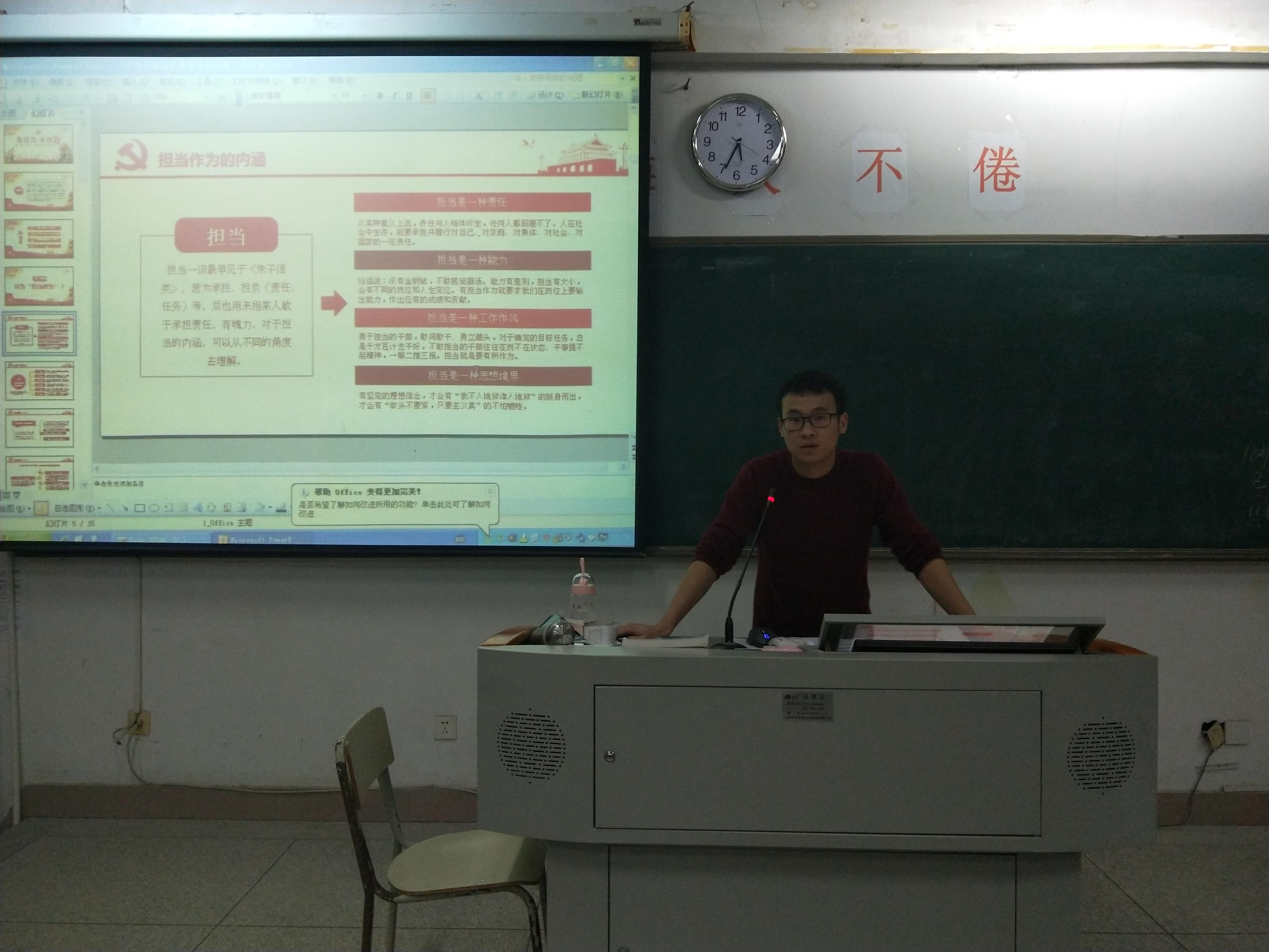 2018年11月29日傍晚,藥學(xué)系于藥二階開(kāi)展業(yè)余分黨校第七講,本次學(xué)習(xí)的主題是“敢擔(dān)當(dāng)有作為筑夢(mèng)新時(shí)代”,由藥學(xué)系學(xué)生黨支部鄭衛(wèi)敏老師主講。
