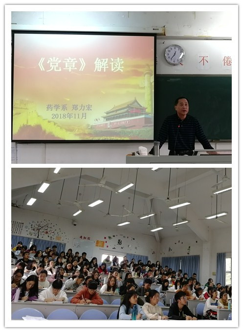 11月19日,我系第21期業(yè)余分黨校在藥二階正式開課,本次黨課的主題是《中國共產(chǎn)黨章程》解讀,由藥學系黨總支鄭力宏書記主講。100多位思想上進、積極向黨組織靠攏的同學參加了本次的黨課學習。