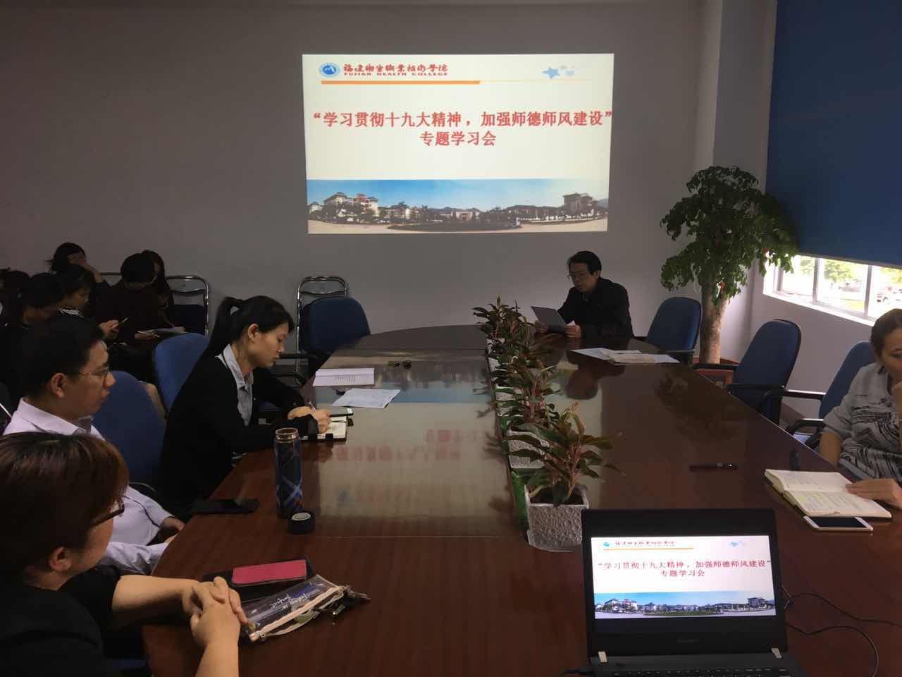 5月3日,藥學(xué)系在系會(huì)議室召開“學(xué)習(xí)貫徹黨的十九大精神 ,加強(qiáng)師德師風(fēng)建設(shè)” 專題學(xué)習(xí)會(huì)。全系教職工參加本次學(xué)習(xí)會(huì),會(huì)議由系黨總支副書記陳潔同志主持。